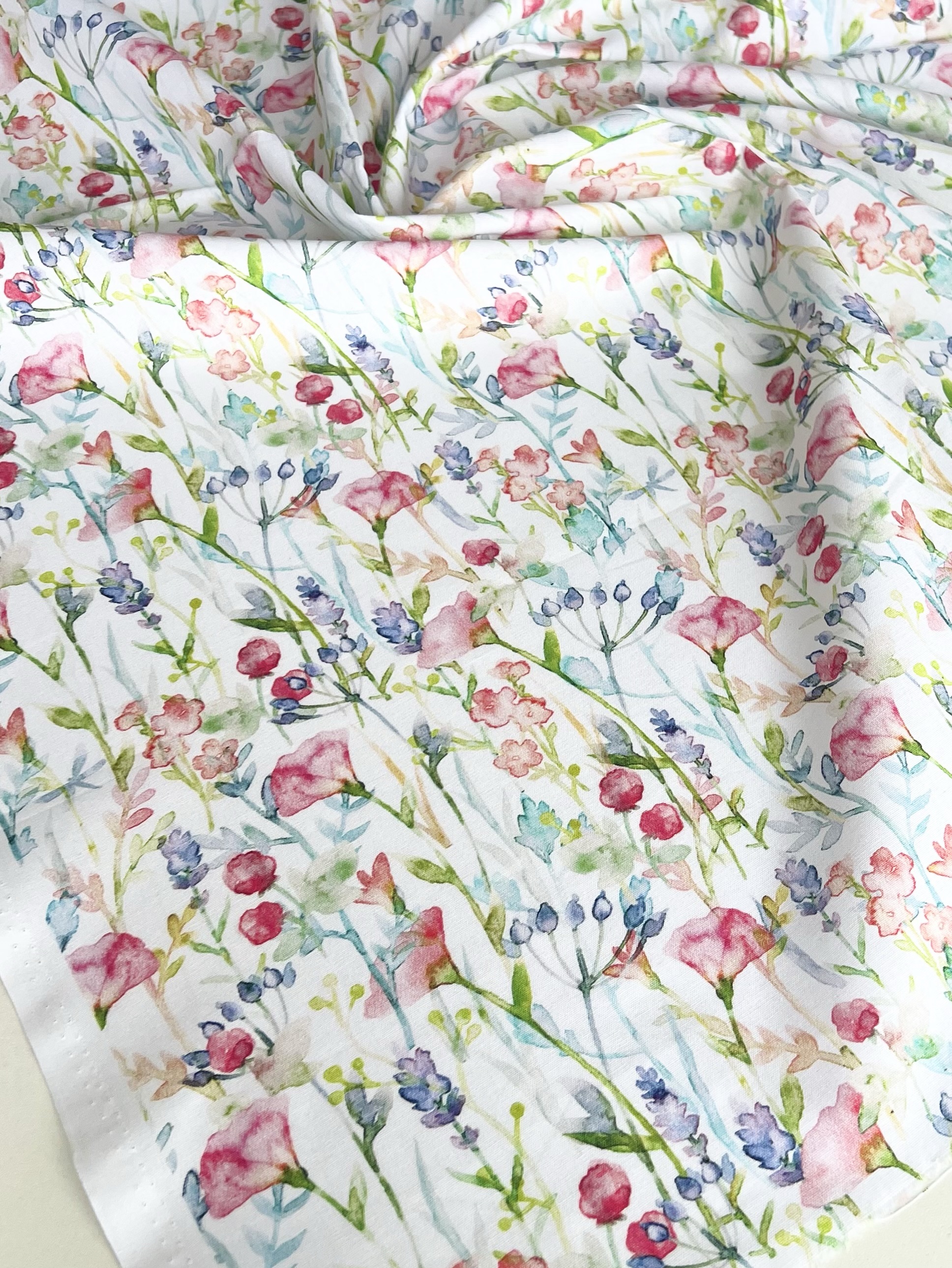 ЦВЕТОЧНАЯ АКВАРЕЛЬ НА БЕЛОМ - 100% хлопок