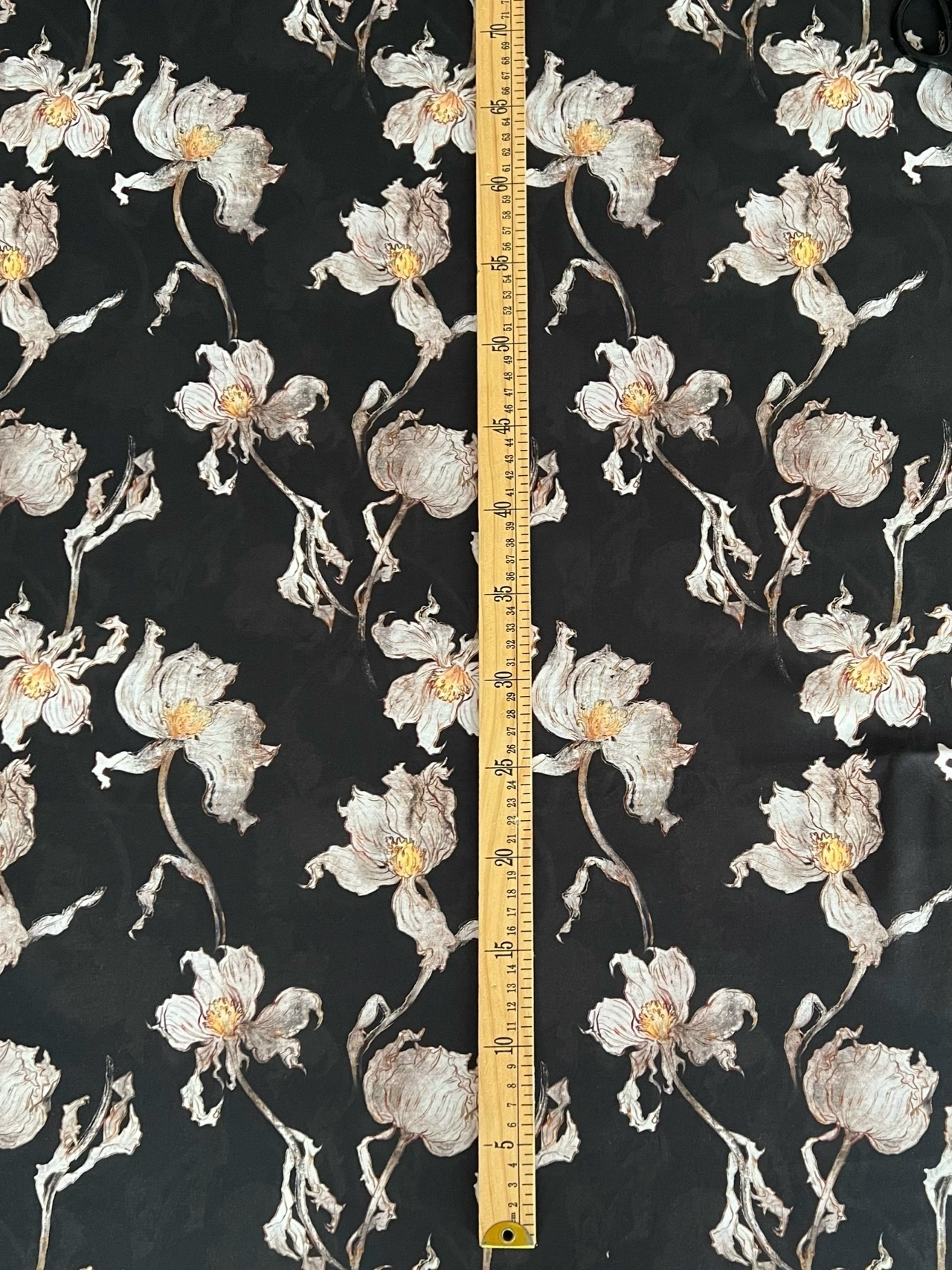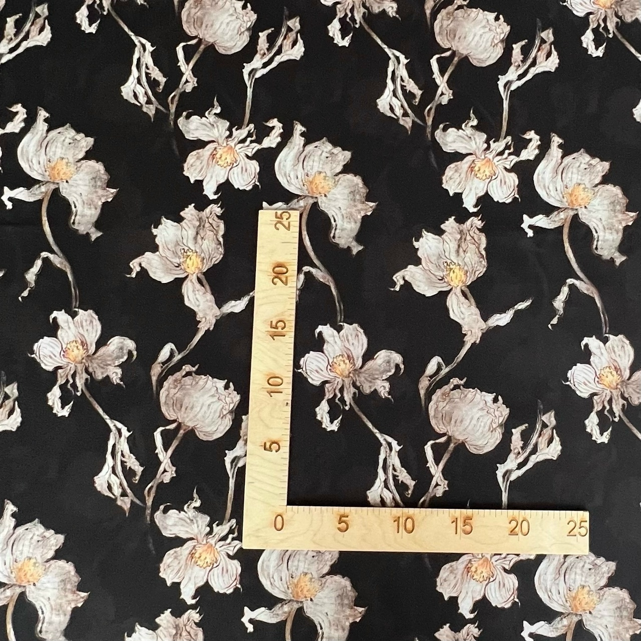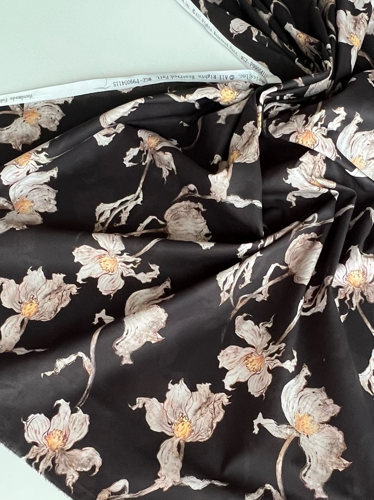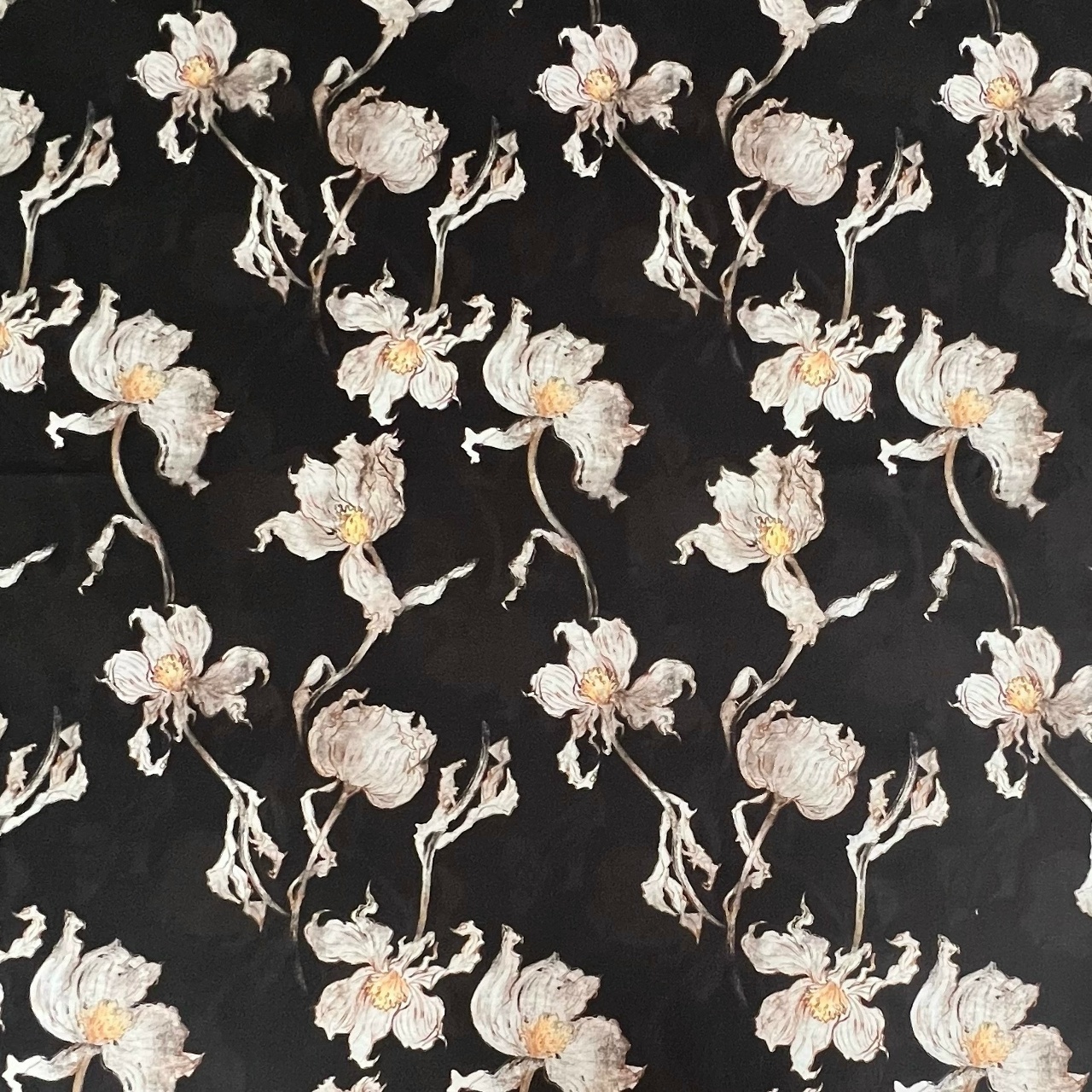 БЕЛЫЕ ЦВЕТЫ НА ПРИГЛУШЕННО ЧЕРНОМ ФОНЕ - 100% хлопок