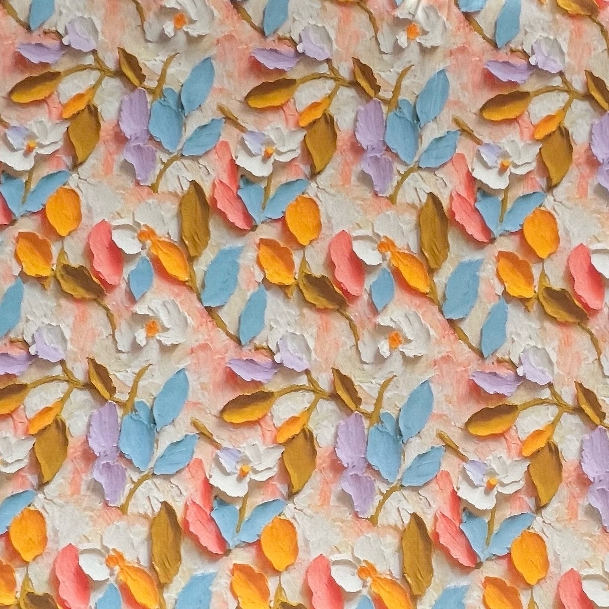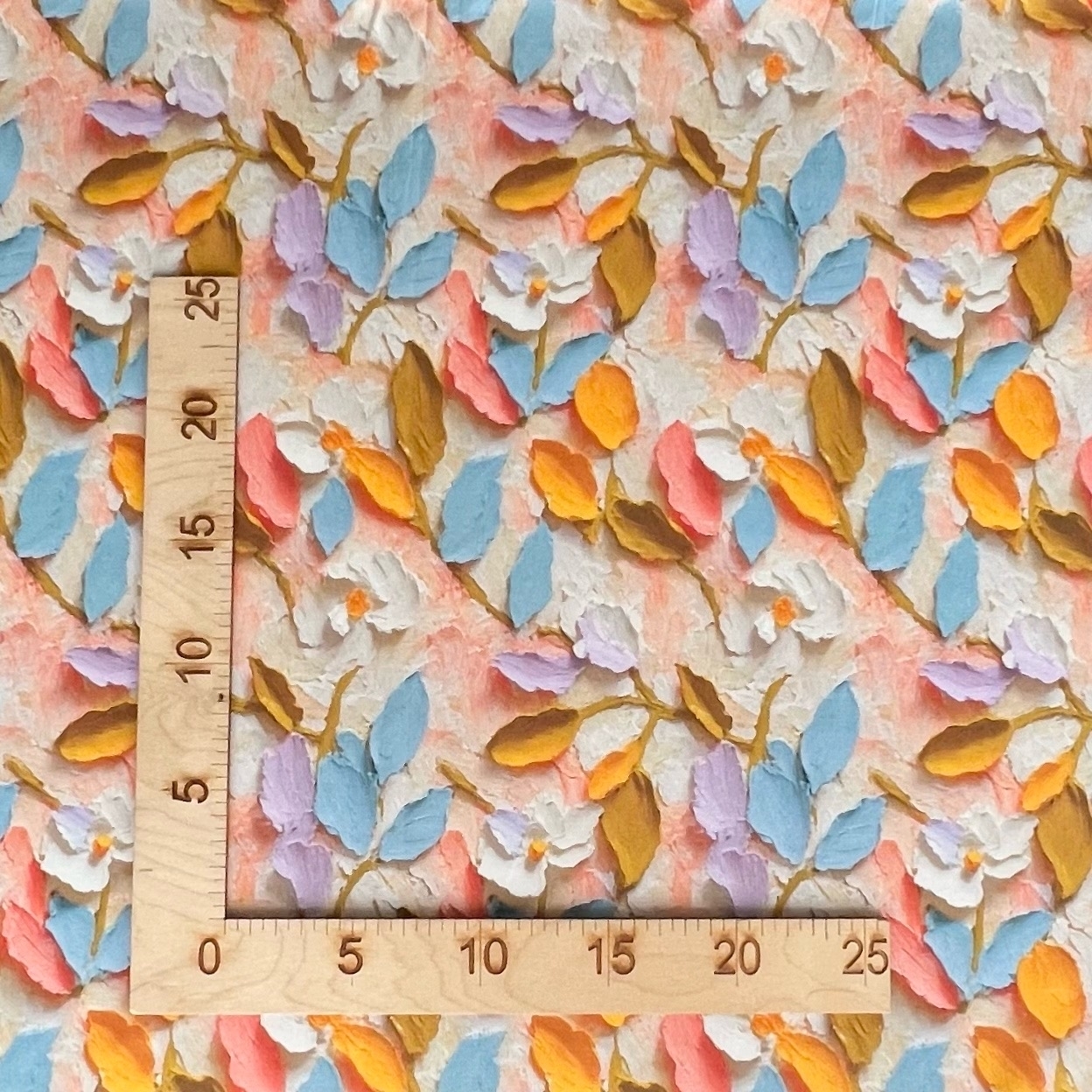 В ПУТИ, ИМПАСТО, ЛИСТЬЯ, ЦВЕТОК/ ЖЕЛТЫЙ, РОЗОВЫЙ, ГОЛУБОЙ, - 100% хлопок