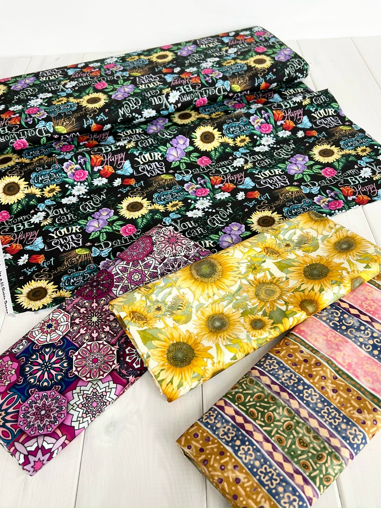 ПОДСОЛНУХИ НА МОЛОЧНОМ ФОНЕ - 100% ХЛОПОК