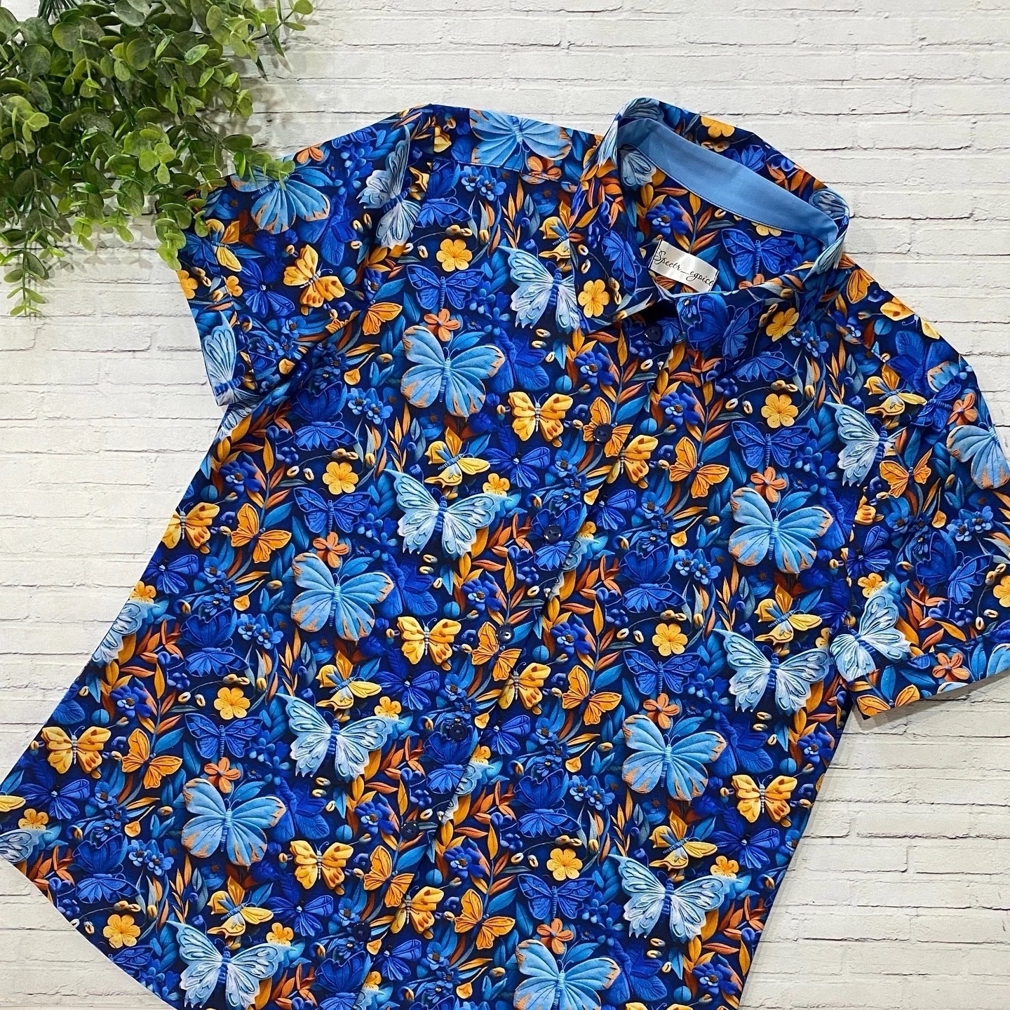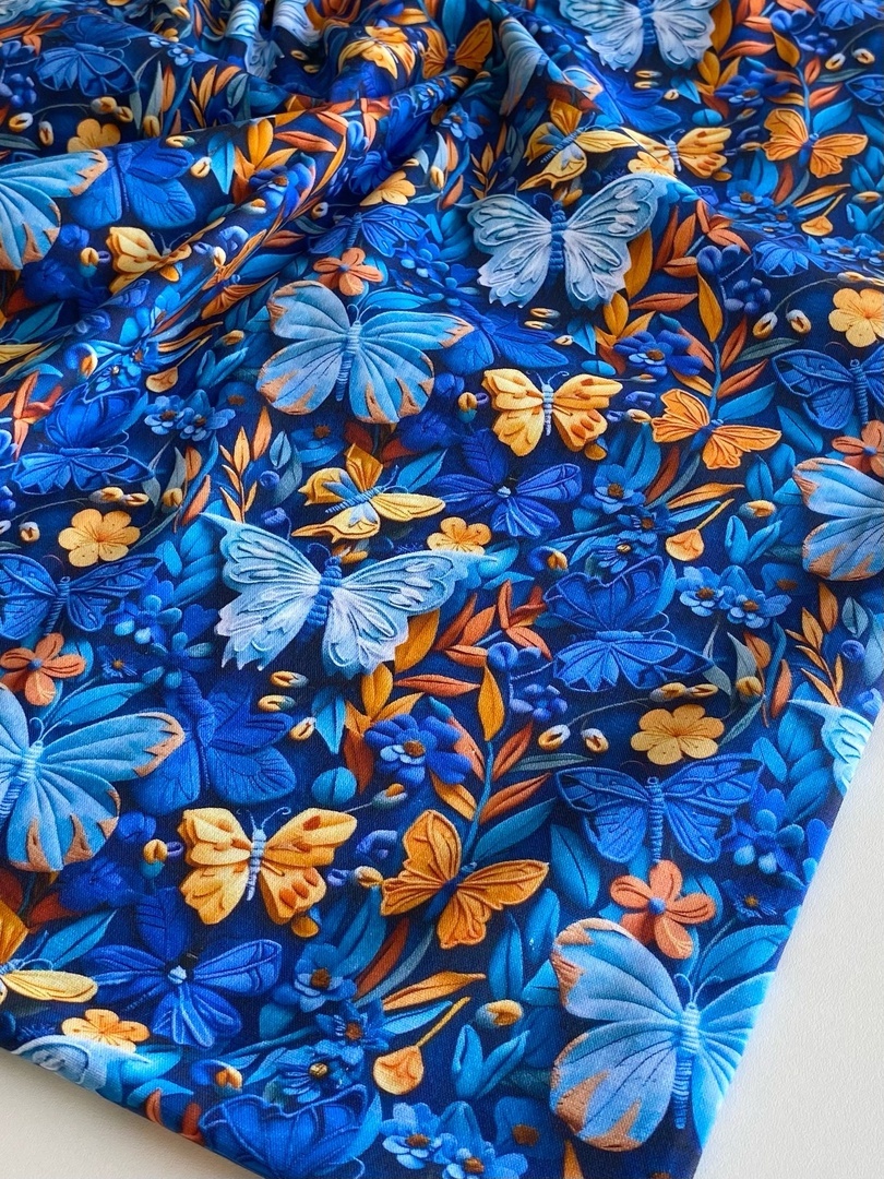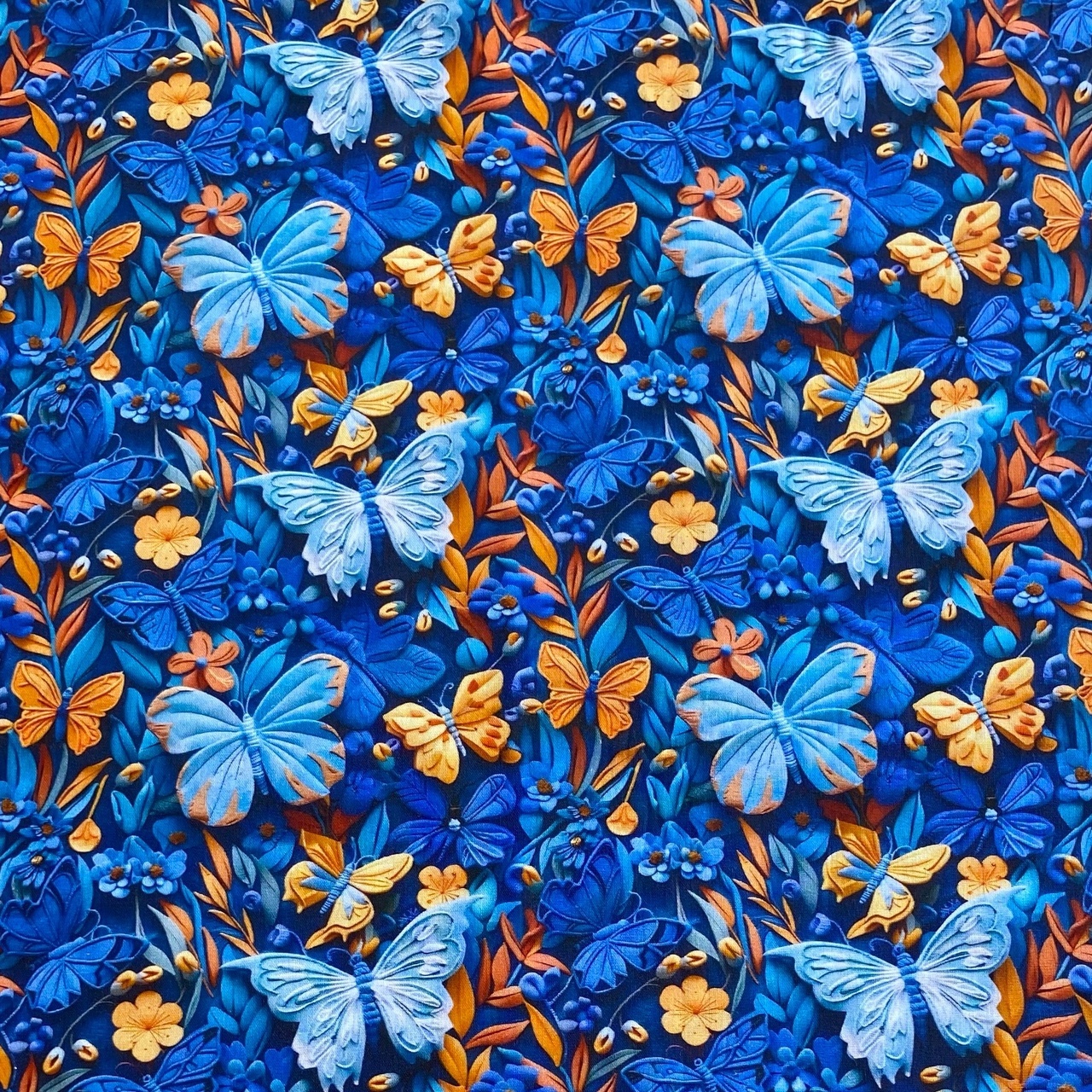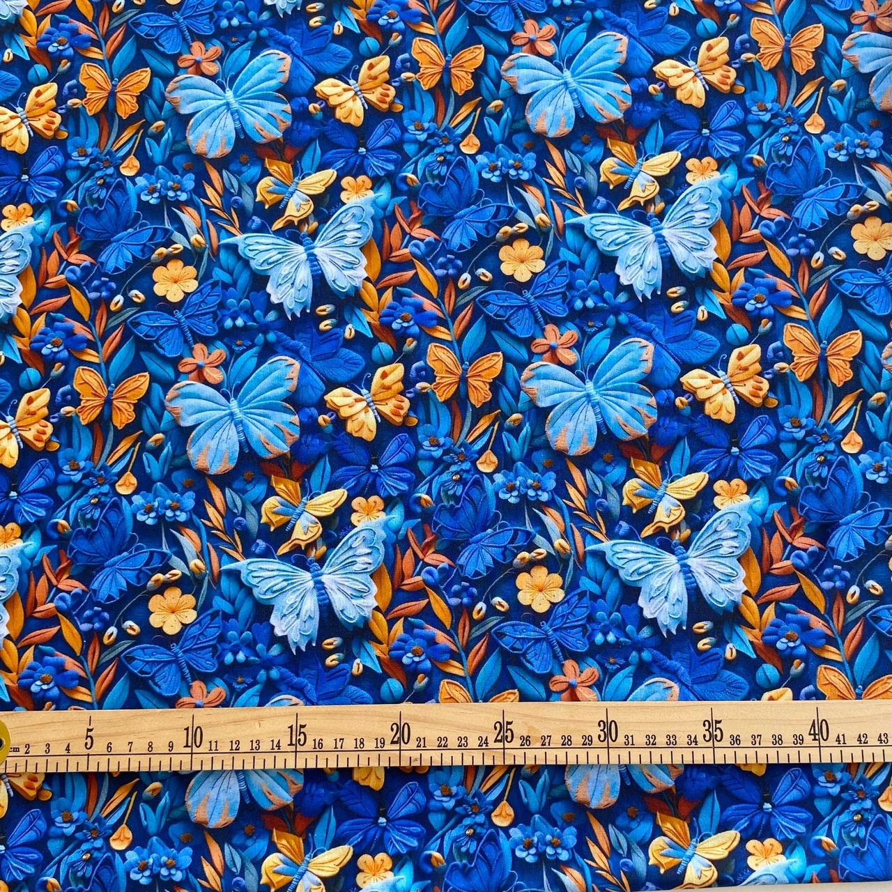 БАБОЧКИ 3D эффект, цв. синий, 100% хлопок, ширина 110 см, 150 гр/кв.м