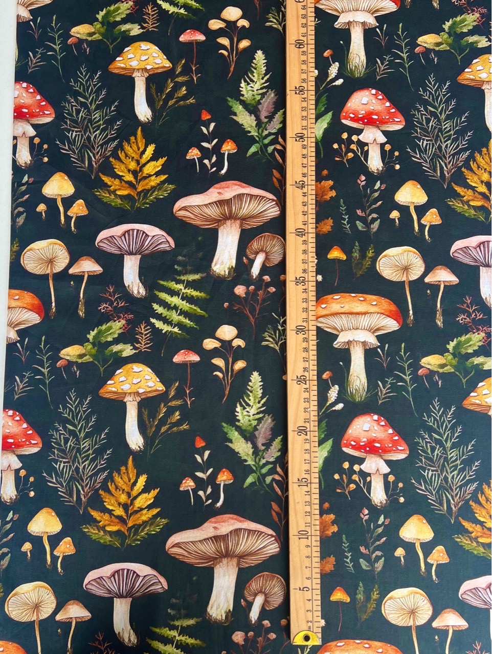ГРИБЫ НА ЧЕРНОМ, отрез 50 см 100% хлопок