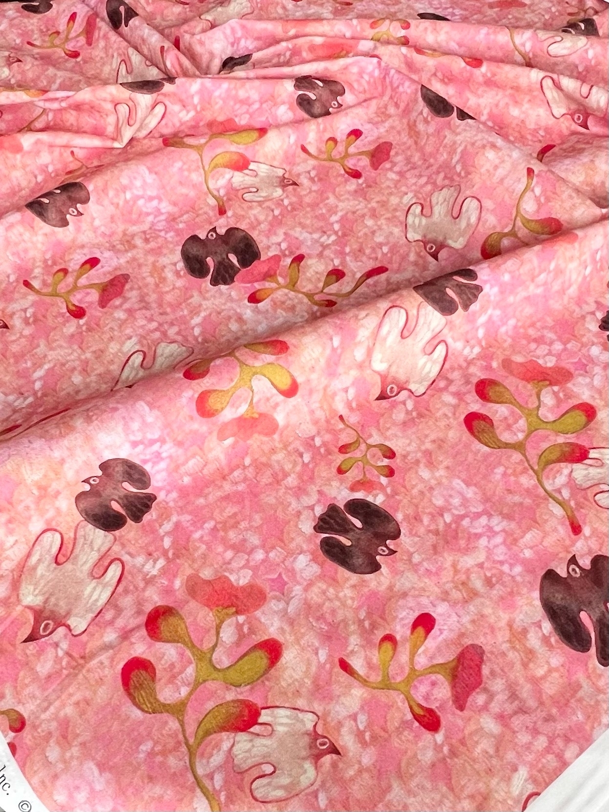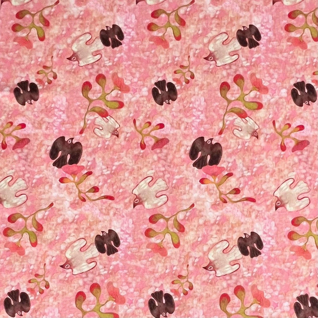 ПТИЦЫ НА РОЗОВОМ ФОНЕ - 100% хлопок