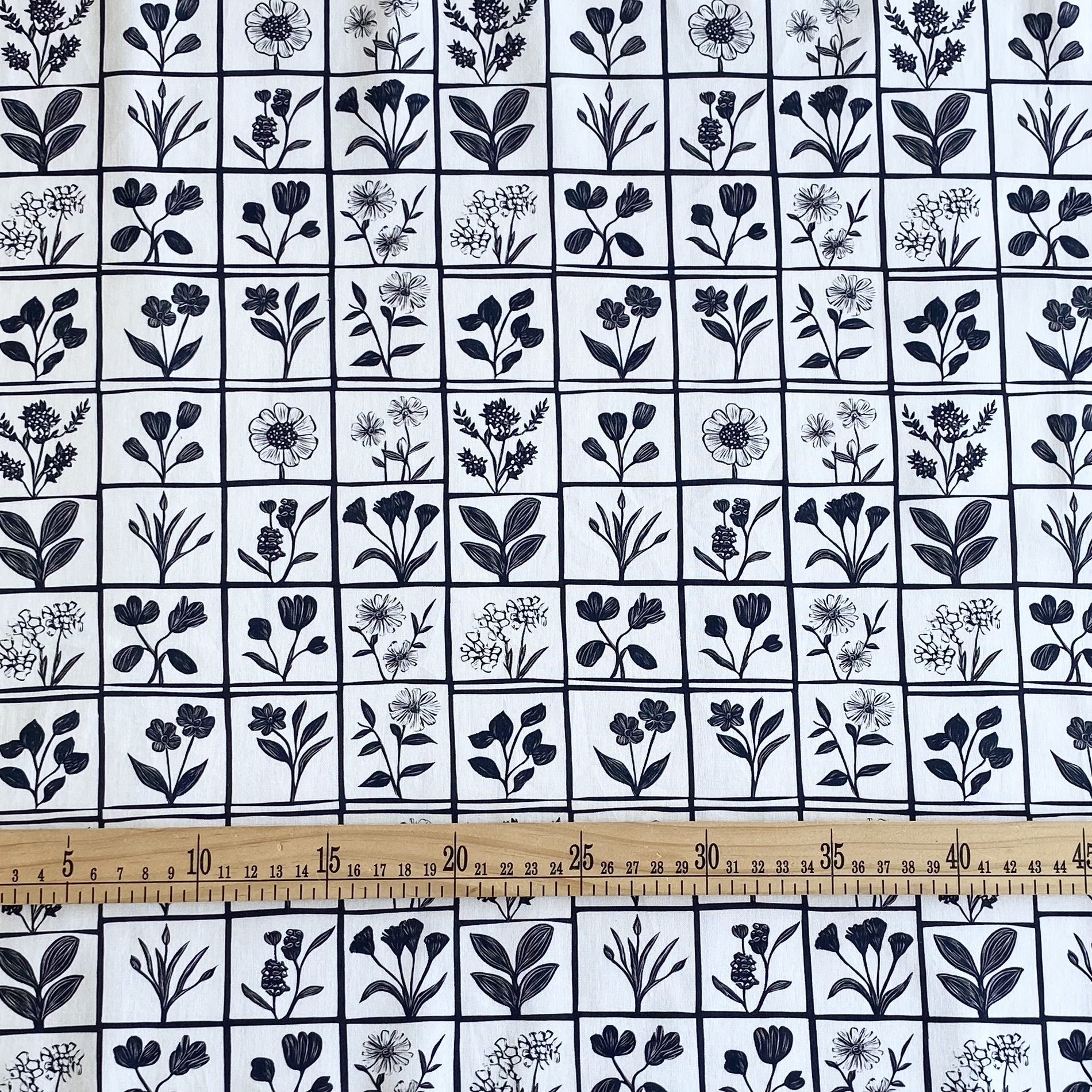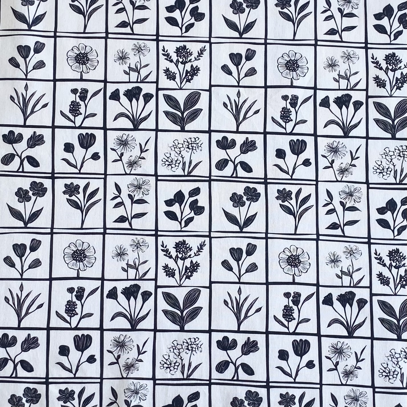 ЦВЕТОЧНЫЕ КЛЕТОЧКИ, цв. БЕЛО-ЧЕРНЫЙ, 100% хлопок, ширина 110 см