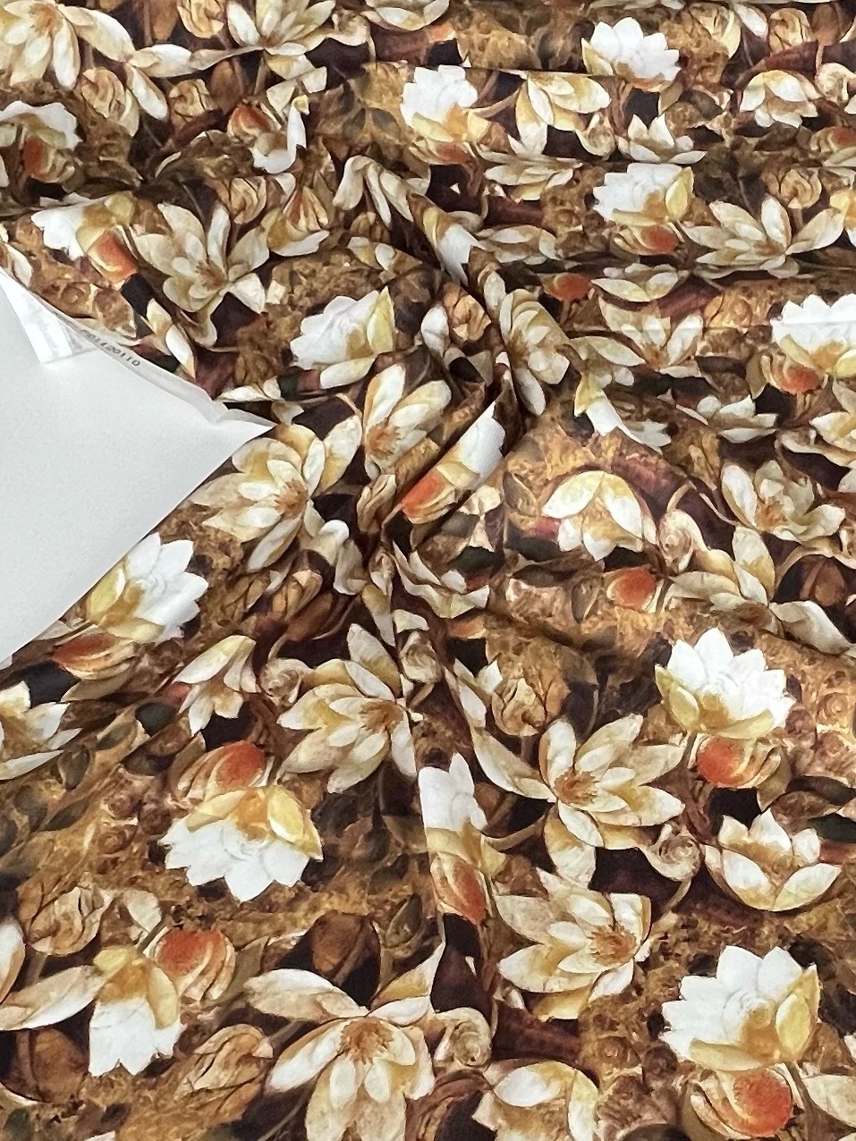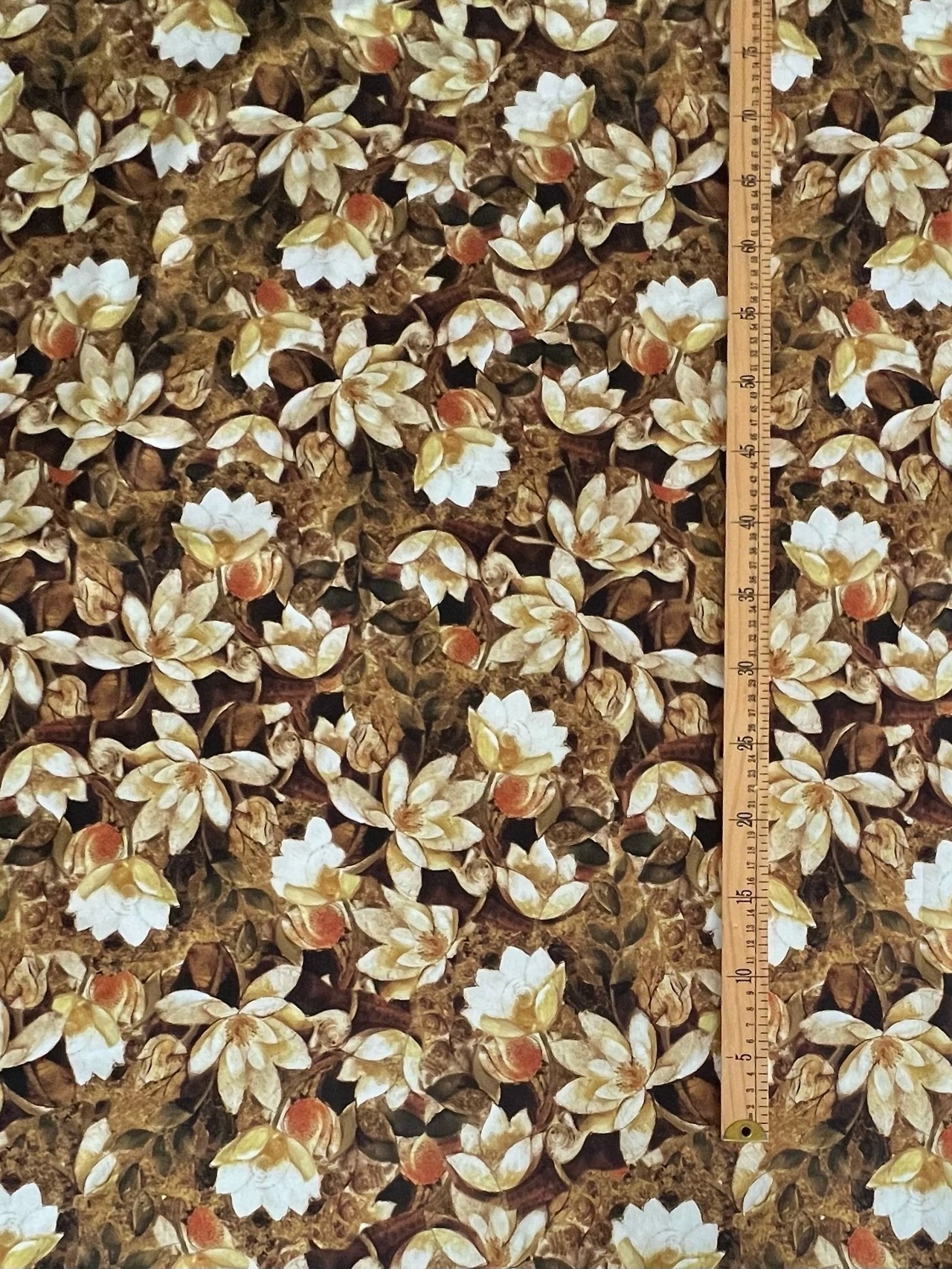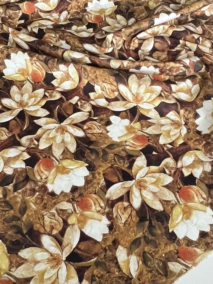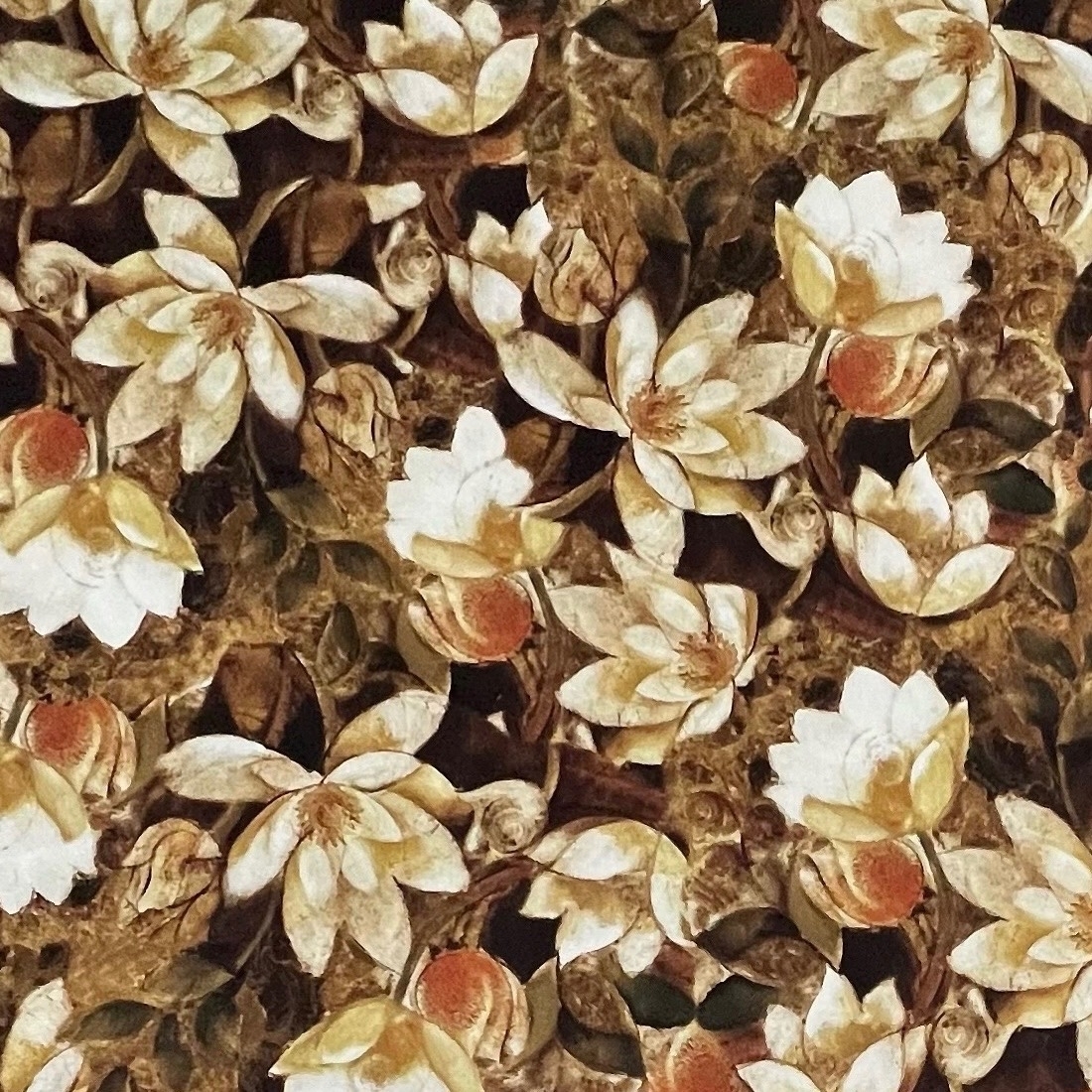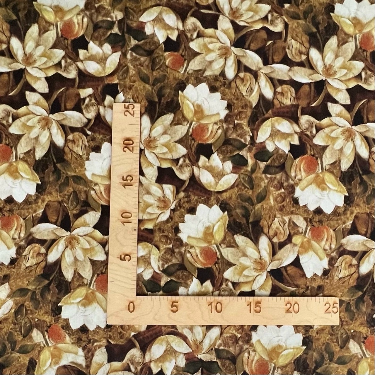 БЕЖЕВЫЕ МАГНОЛИИ НА ШОКОЛАДНОМ ФОНЕ - 100% ХЛОПОК