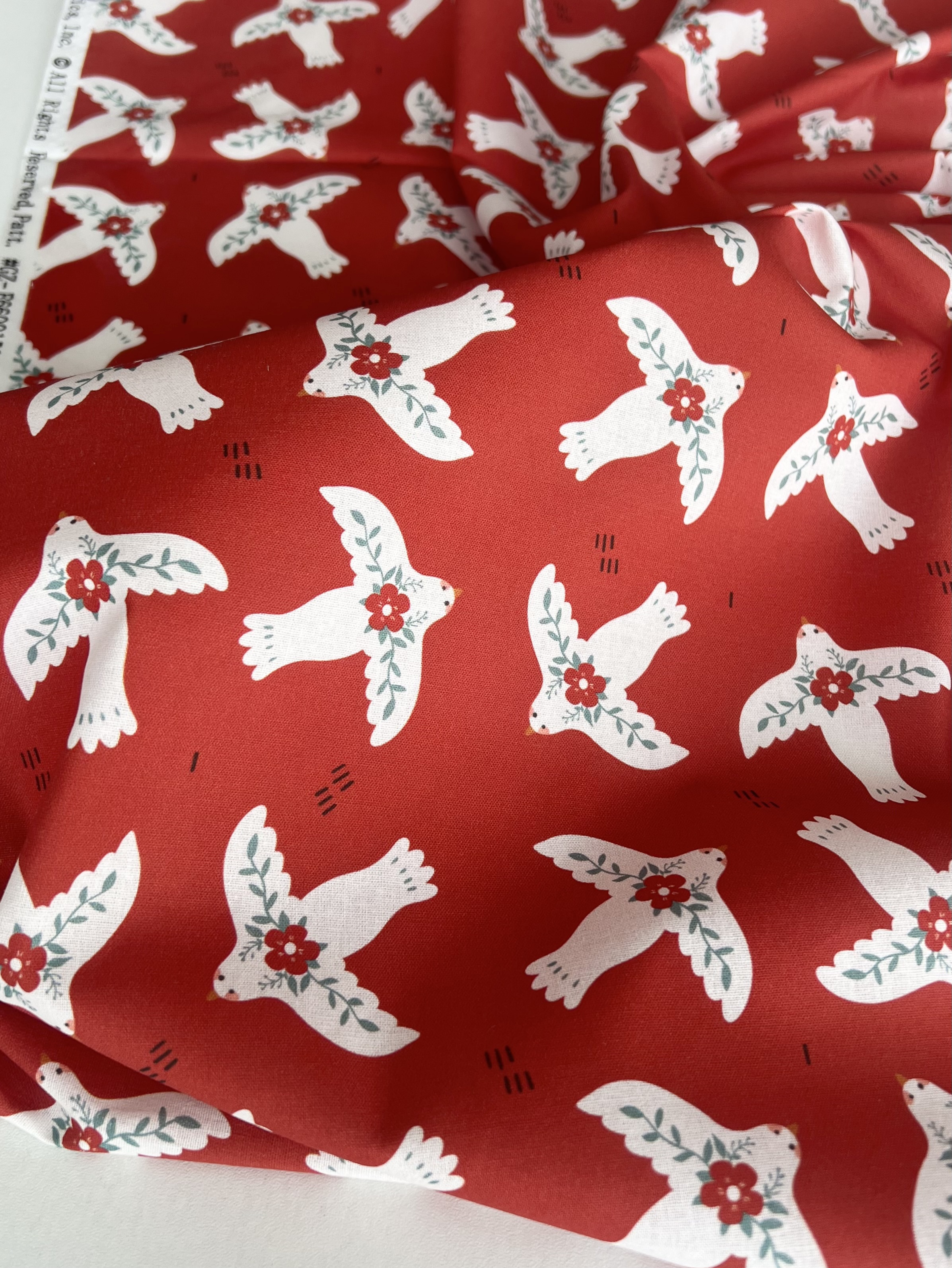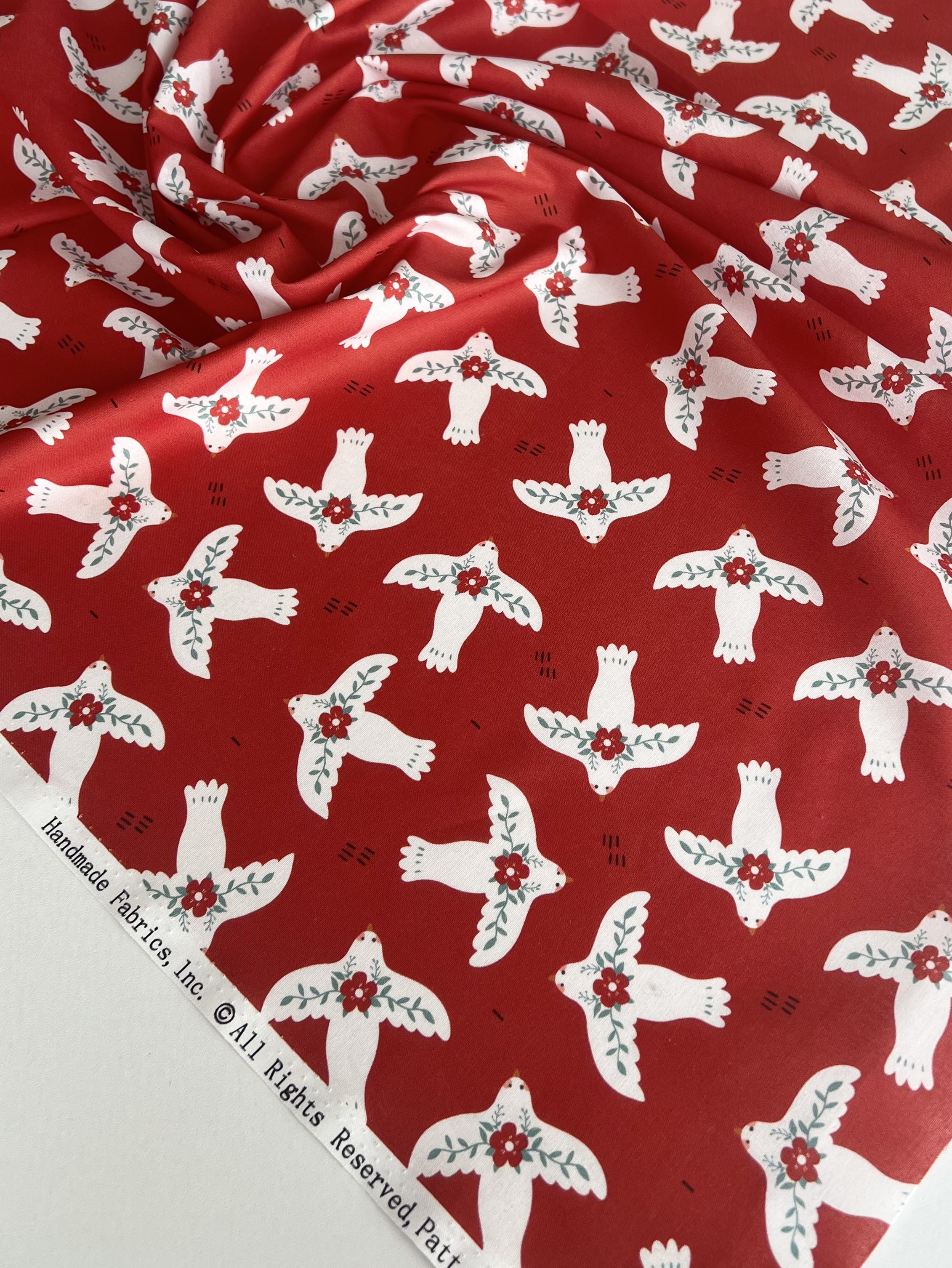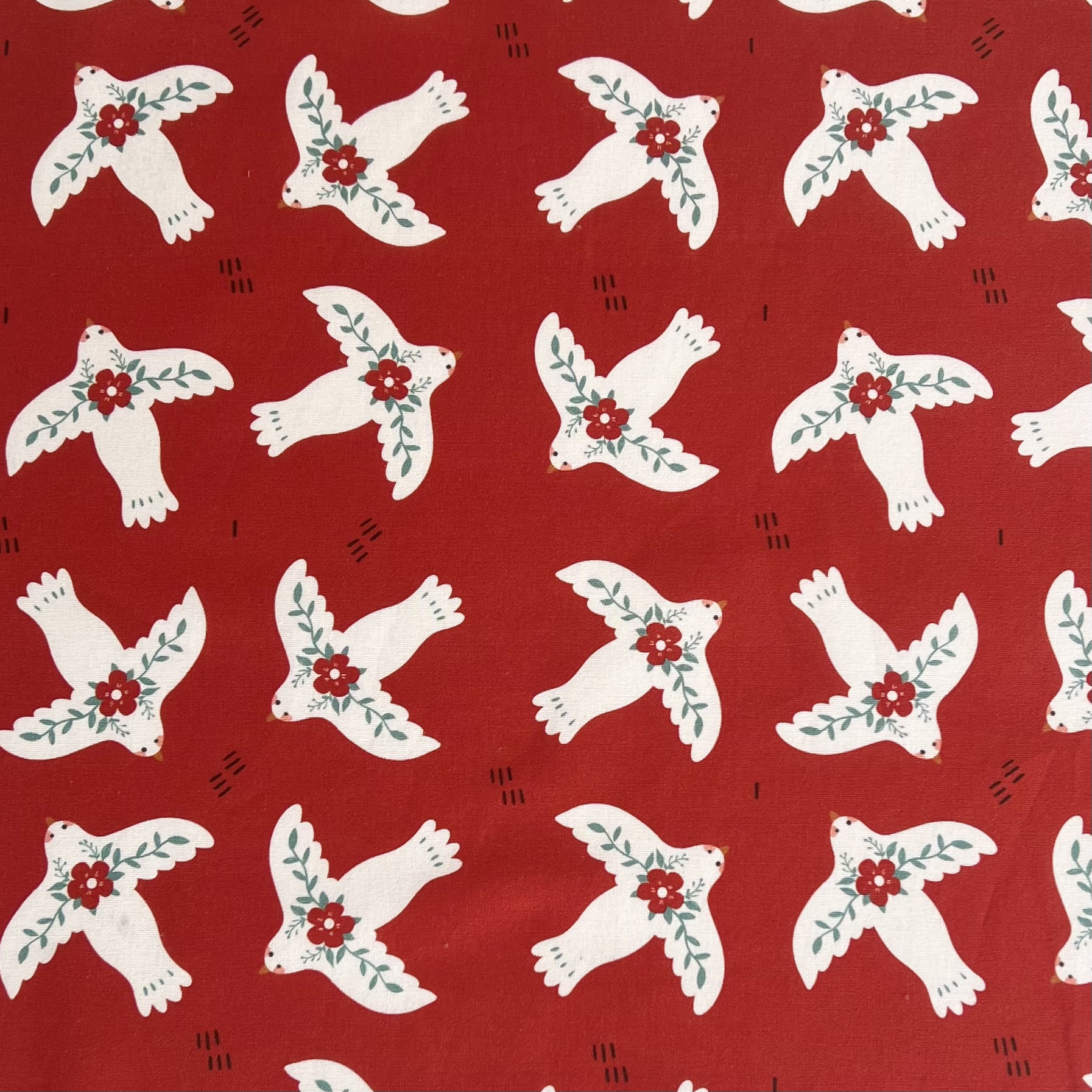 БЕЛЫЕ ПТИЧКИ НА КРАСНОМ, 100% хлопок