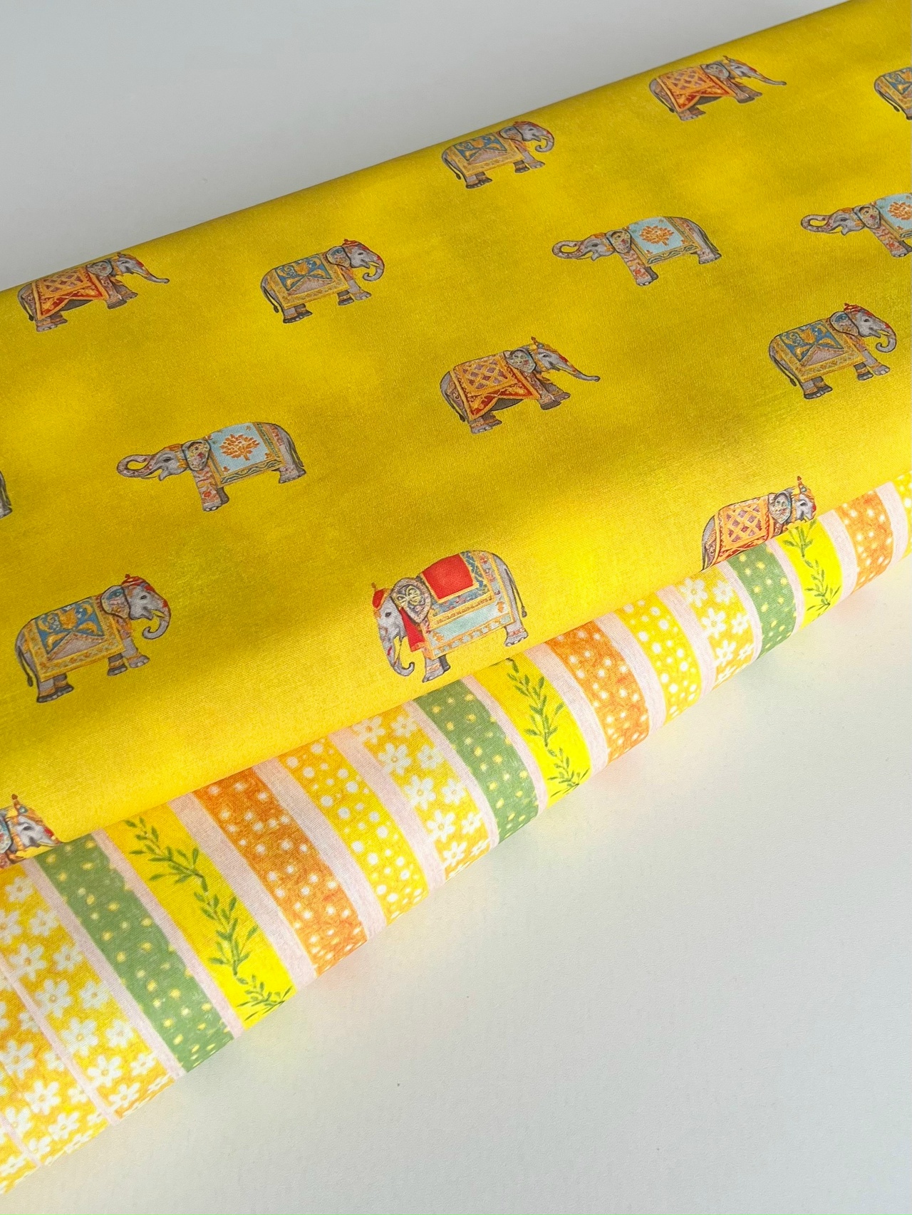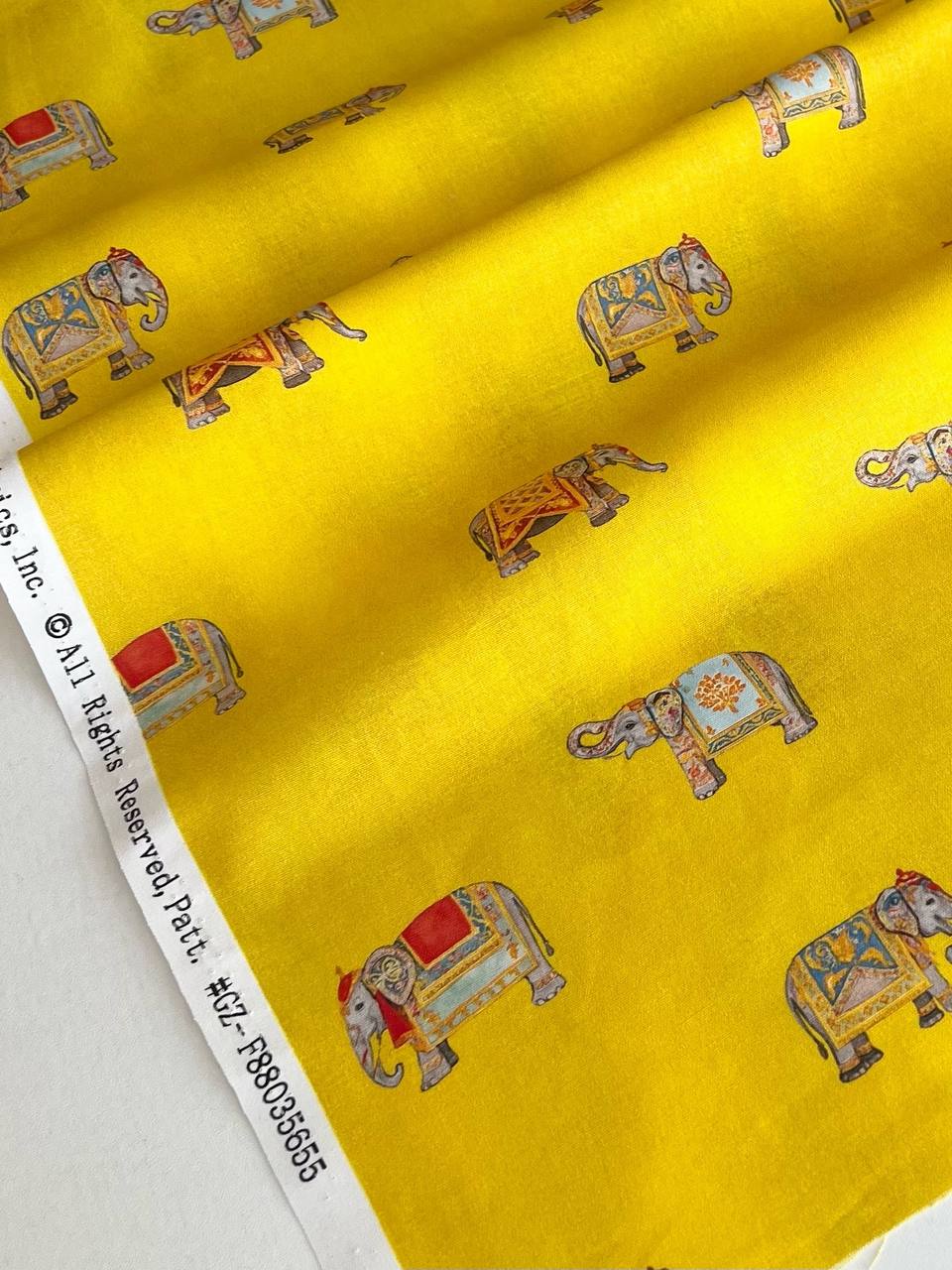 ИНДИЙСКИЕ СЛОНЫ НА ЖЕЛТОМ, 100% хлопок
