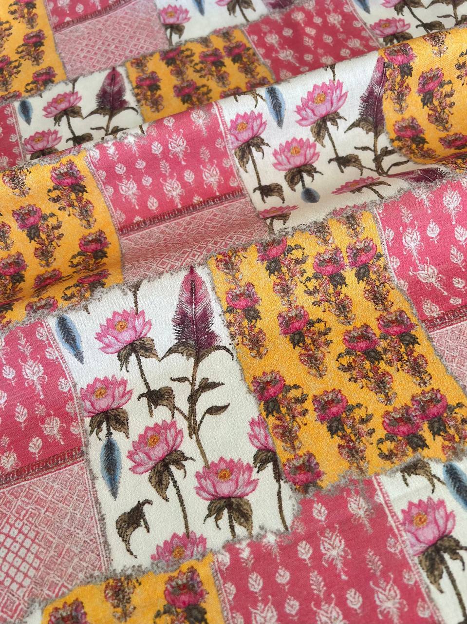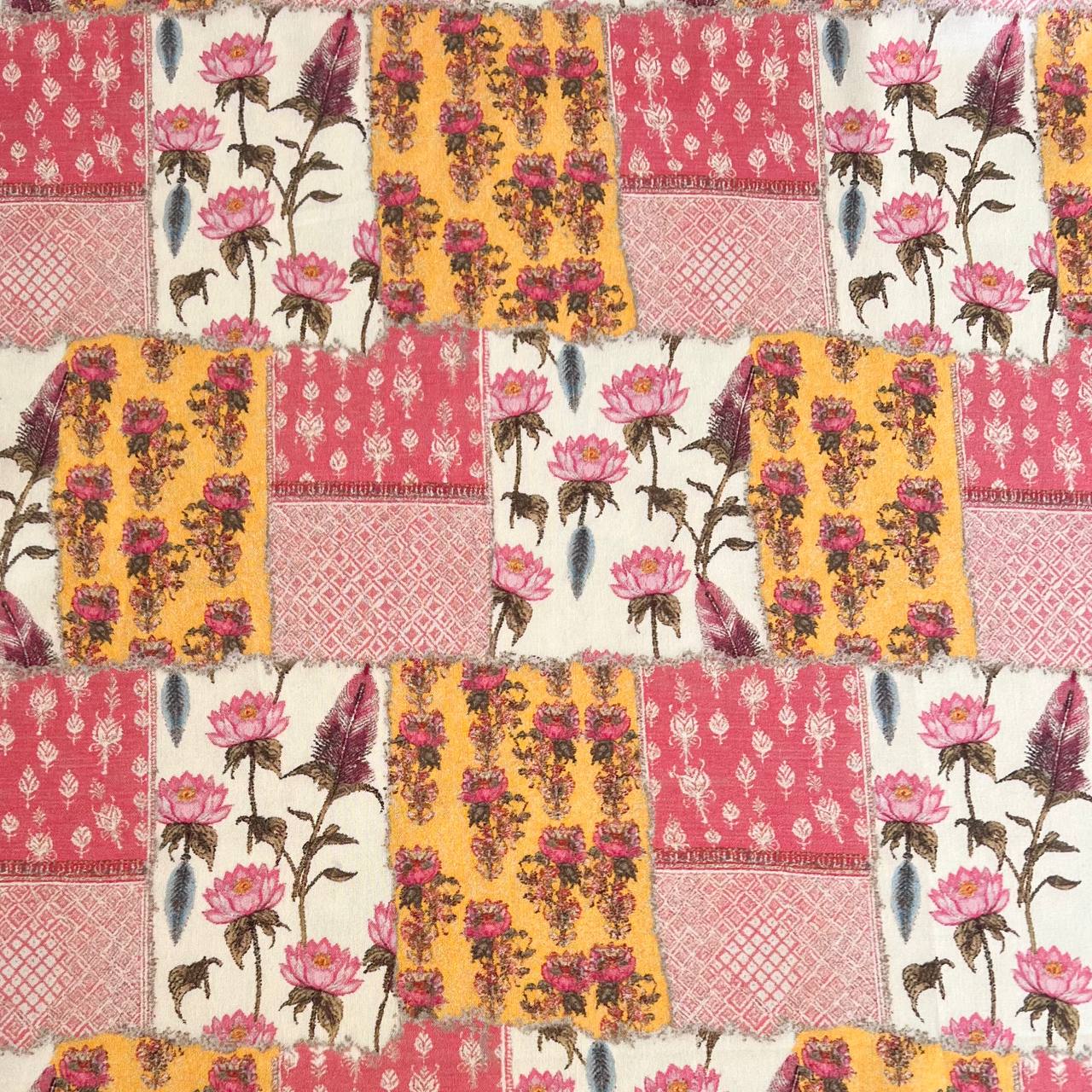 ЦВЕТОЧНЫЕ ЭСКИЗЫ, РОЗОВО-ЖЕЛТЫЙ - 100% хлопок