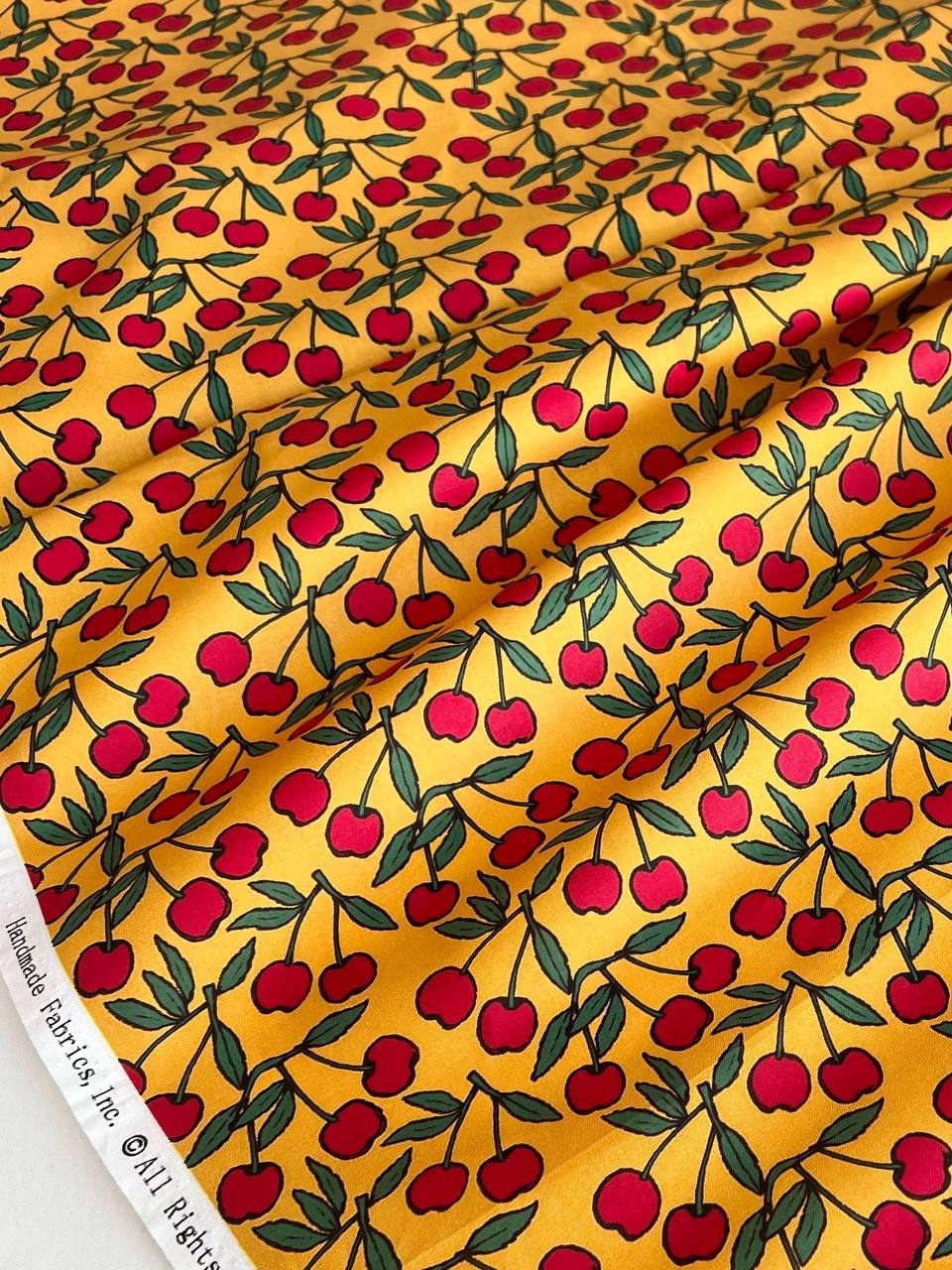 ВИШЕНКИ НА ЖЕЛТОМ - 100% хлопок
