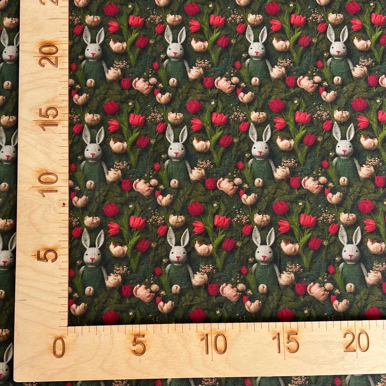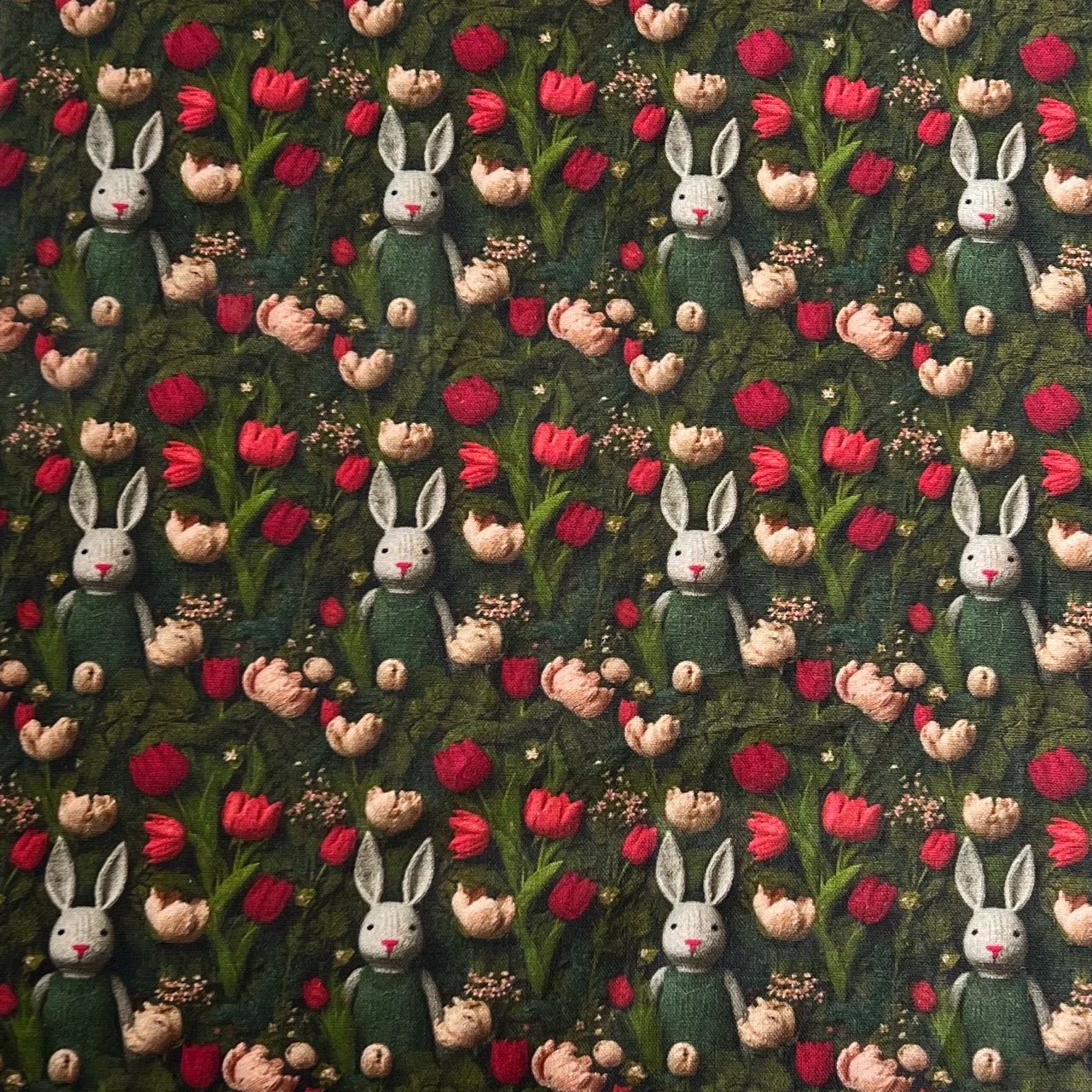 ВЯЗАНЫЙ ЗАЙЧИК С ТЮЛЬПАНАМИ,100% хлопок